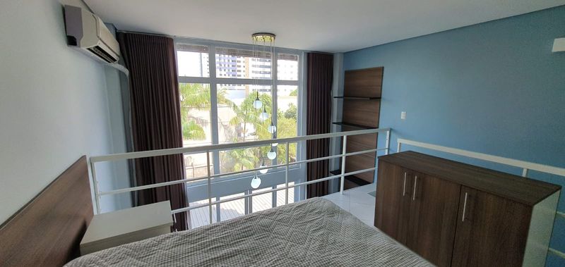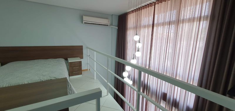 Sala dois ambientes com iluminação natural e pé direito duplo;