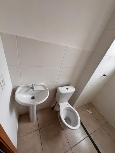Banheiro social com área molhada azulejada até o teto;