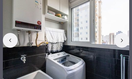 Lavanderia com divisória com armários;