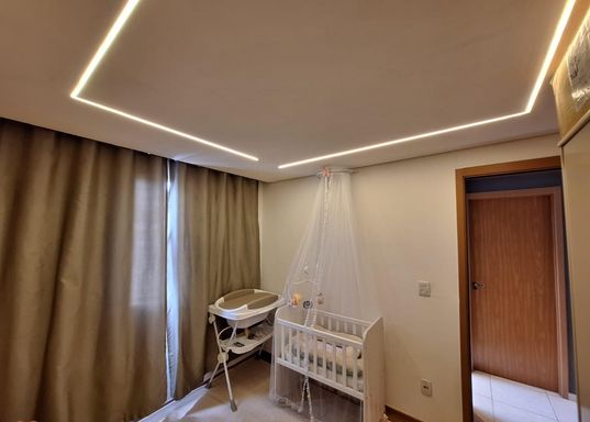 Acabamento em gesso e iluminação em LED;
