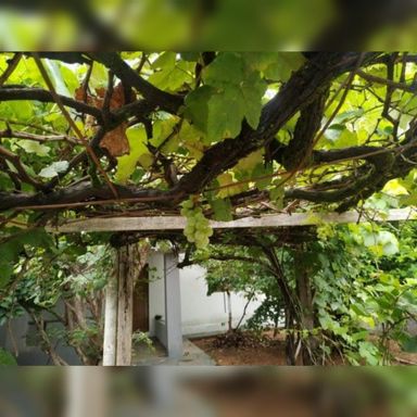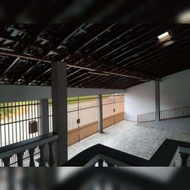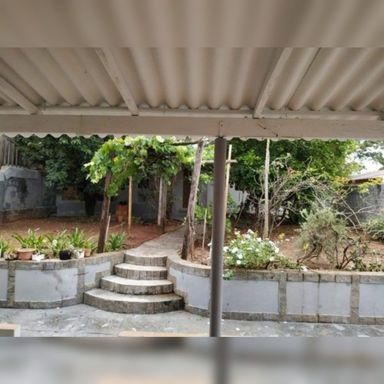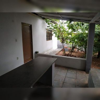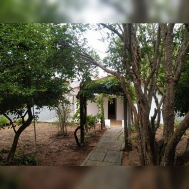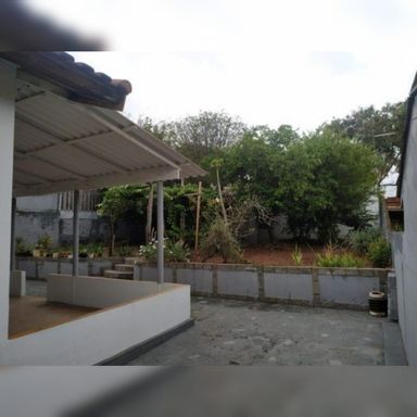 Quintal enorme com árvores frutíferas e muito espaço de ar livre.