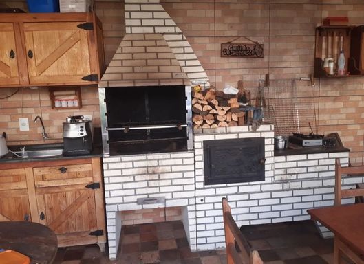 Área de lazer com trio de churrasqueira, forno e fogão a lenha;