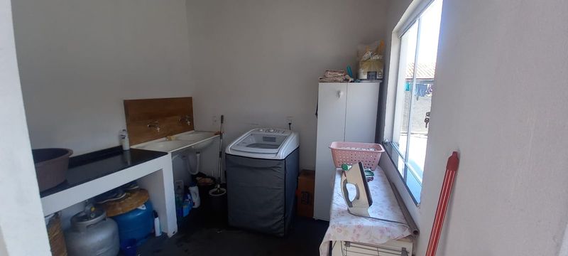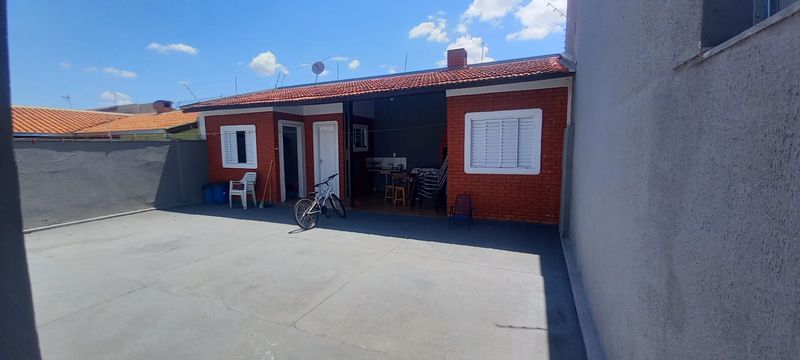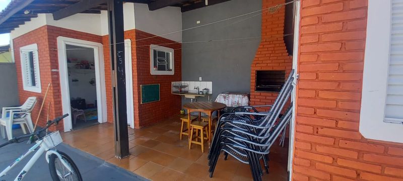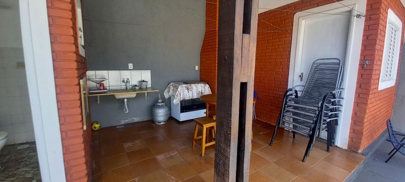 Edícula com dois quartos, um banheiro, churrasqueira e pia;