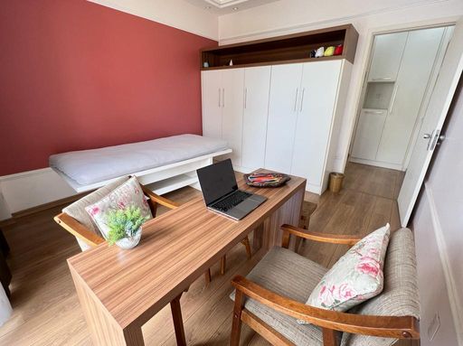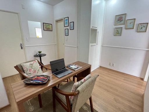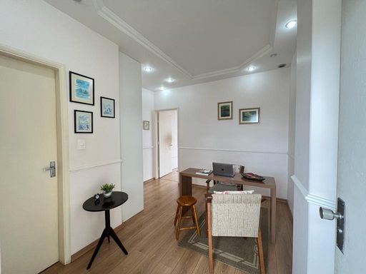 Com dois ambientes, um ideal para sala de espera e o outro uma sala climatizada, com acesso a sacada, possuindo metragem suficiente para uma mesa e maca de consulta, este imóvel ainda inclui armários embutidos em ambos os ambientes, banheiro particular, ar-condicionado novo, prédio com porteiro e elevador, vista ampla para a cidade e a proximidade a vários comércios.